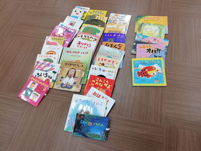 床に並んでいる絵本は当日用意した絵本です